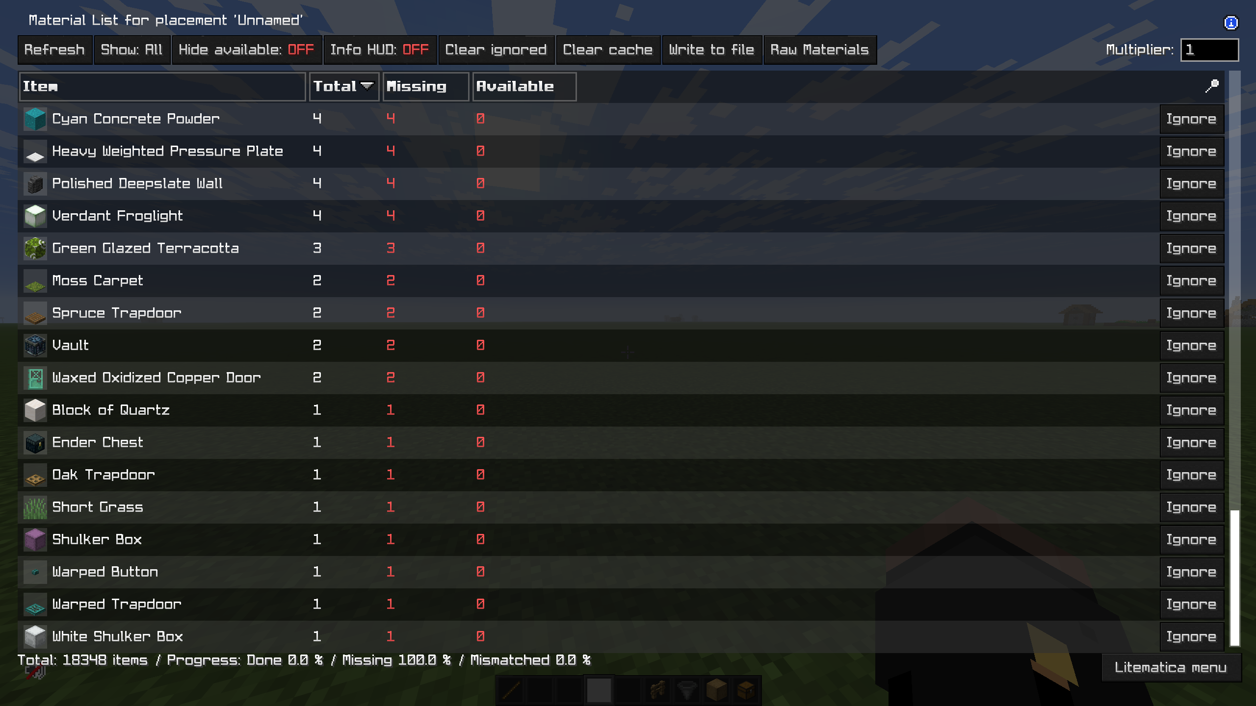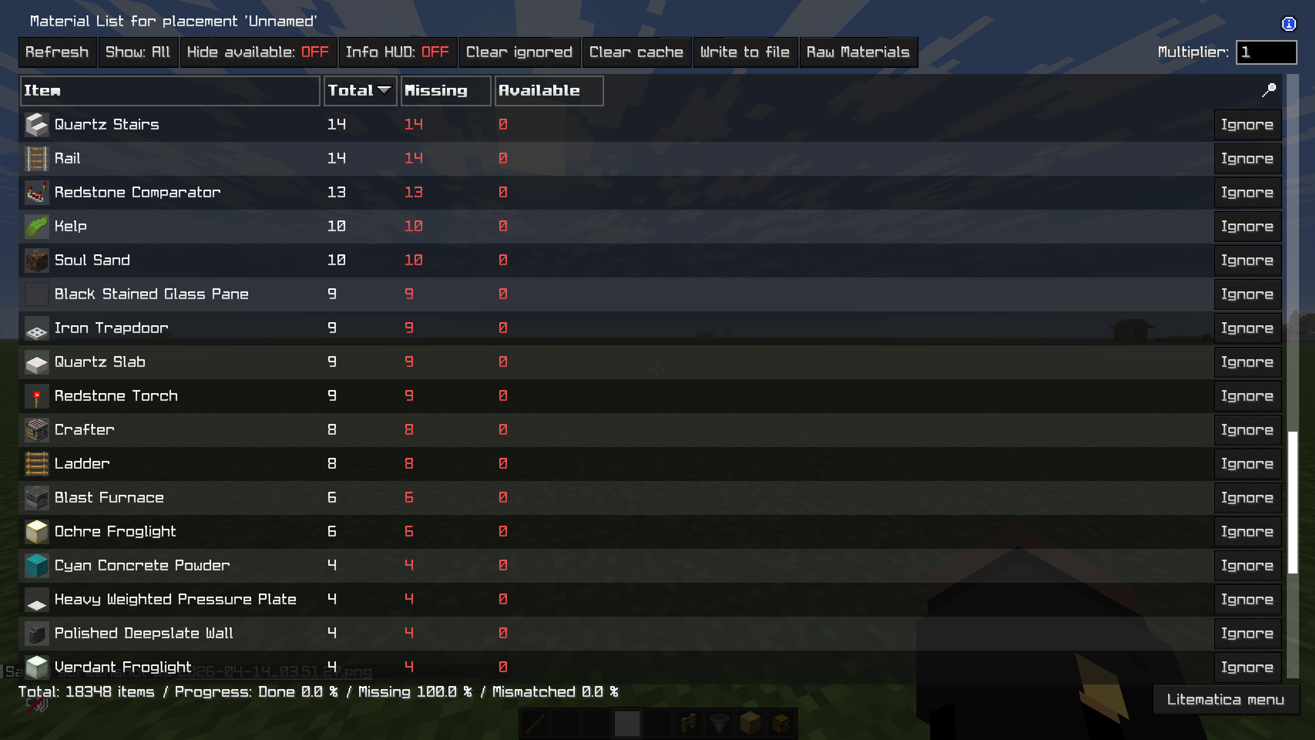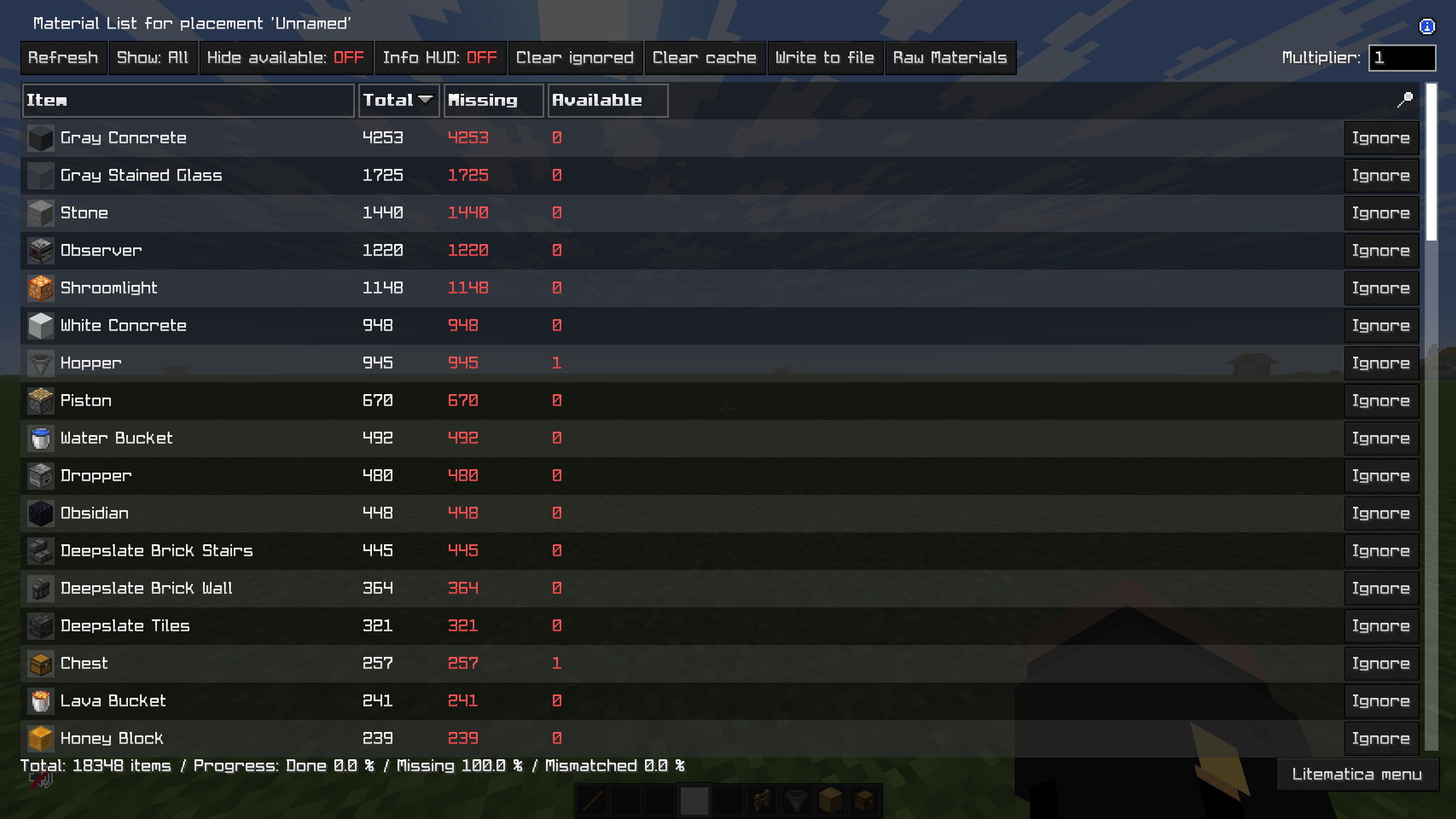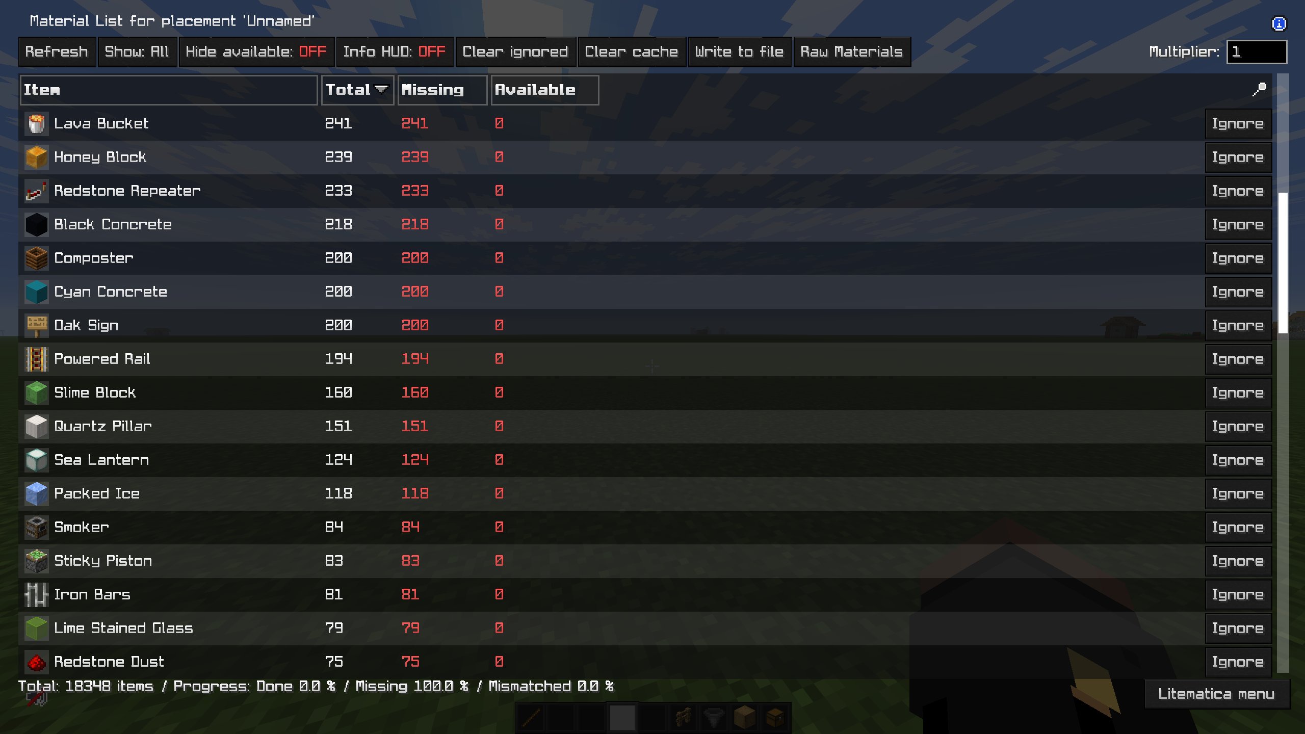Before you start building, make sure you have all the necessary items in your inventory. Here is the complete material breakdown for this farm: