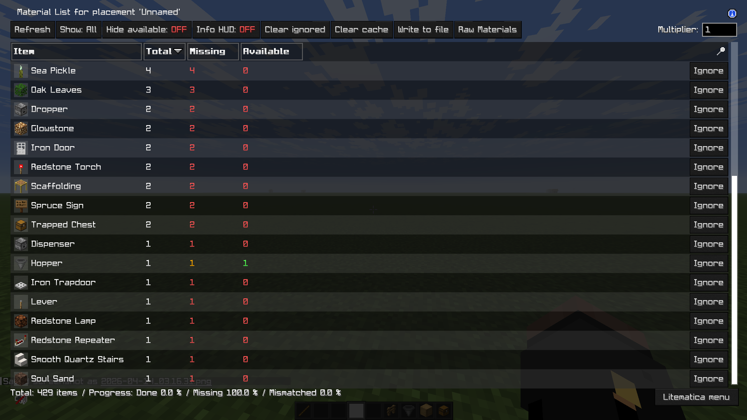 Before you start building, make sure you have all the necessary items in your inventory. Here is the complete material breakdown for this farm:
