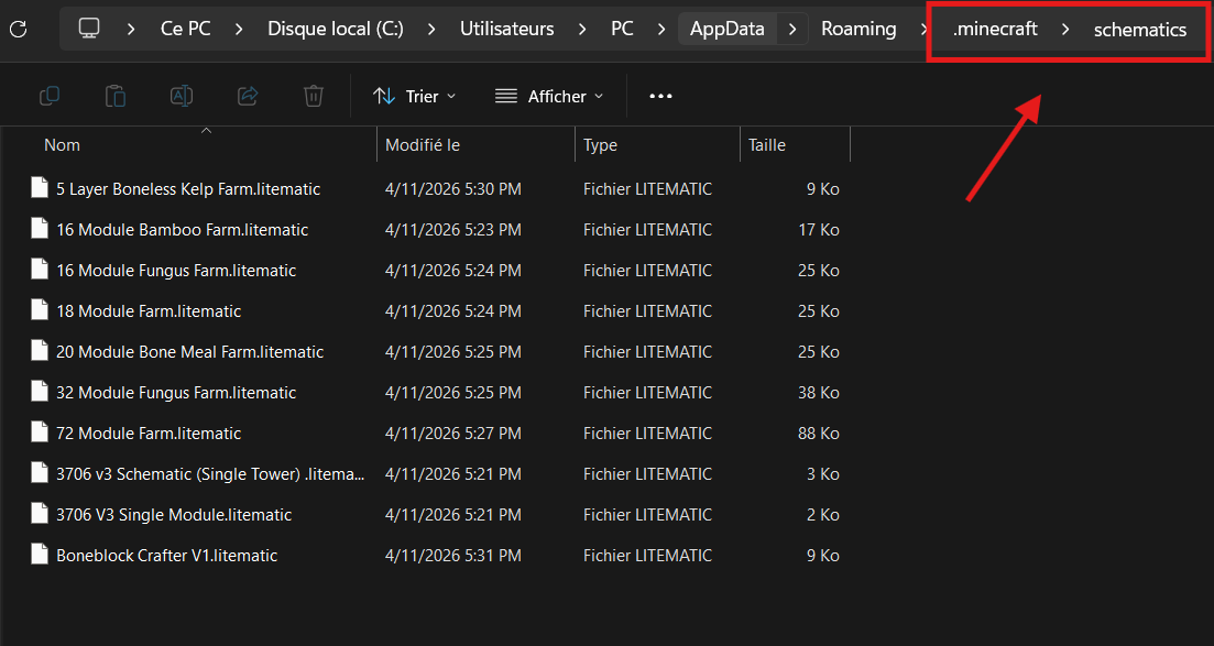 Navigate to .minecraft/schematics.